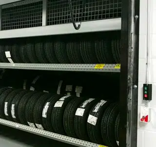 Storage Solutions: technicians work space, parts room storage, tire storage.