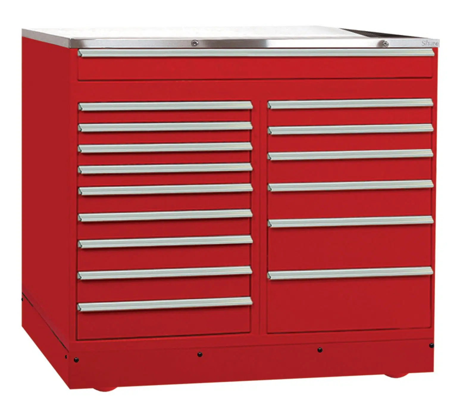 Shure Manufacturing Corporation engineers and manufactures high quality, professional workbenches, tool storage, storage cabinets, transmission benches, technician carts, transaction / service cabinets and various shop equipment. Shure has been a major supplier of quality shop equipment for the automotive service / repair and petroleum industries since the 1940s. Shure’s state-of-the-art manufacturing facility is centrally located in Washington, Missouri. Shure re-located its plant to Washington in 1995 after 50 years in St. Louis. Shure’s manufacturing facility features a high tech powder paint line offering 22 Signature Powder Coat Paint colors and a high tech laser precision cutting machine and computerized fabrication equipment.