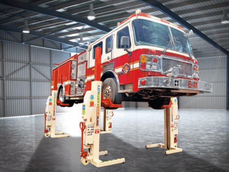 Wireless mobile column lifts from Stertil-Koni are a portable and efficient solution for lifting heavy-duty vehicles. These lifts are designed to be safe, secure, and certified, with no need for an external power source or interconnecting communication cables, reducing the risk of operator tripping and minimizing setup time.